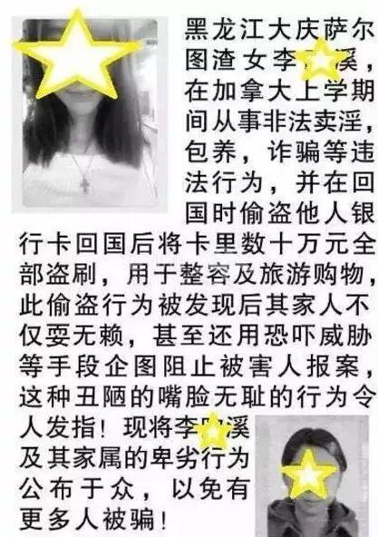 前不久,还有一男子在加拿大某高校内拉了一个横幅,上面写着:“渣女李X溪,在加拿大上学期间从事包养卖X诈骗活动,请大家认清其真面目”。