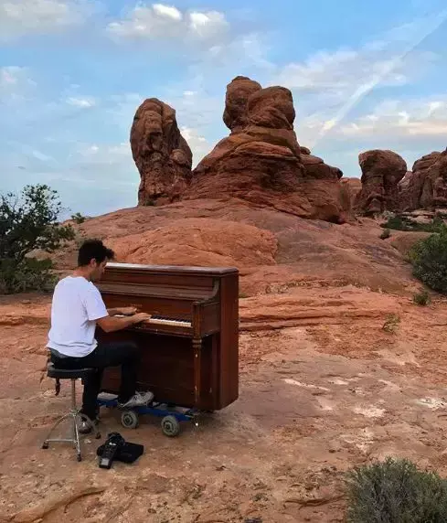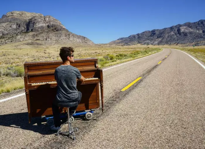 有一天他突然顿悟:旅行和音乐不正是他的兴趣么?如果在旅行的路上弹着钢琴,会是怎样一番情景?