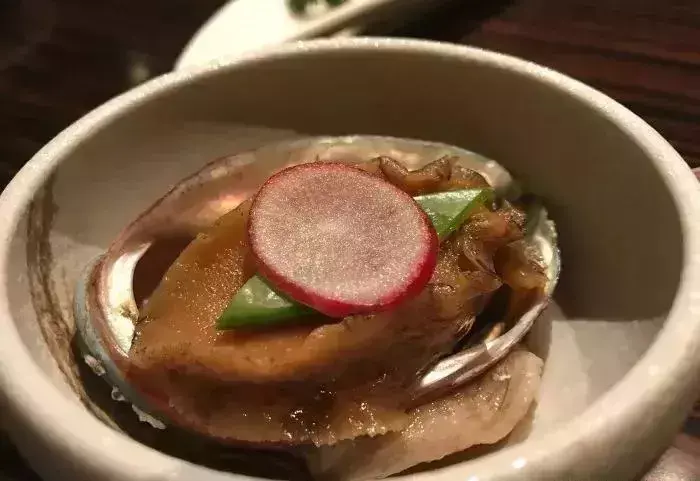 其中的清酒冻半头鲍,一位12800元。一般的清酒冻鲍鱼是这样的,一份也就100块钱,很便宜。