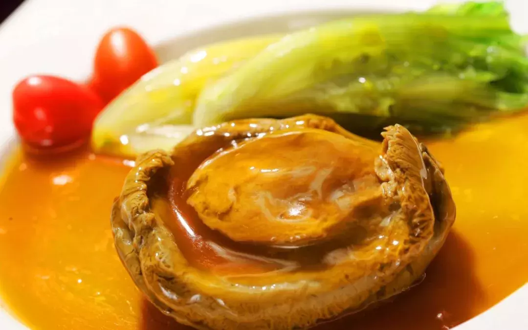 这里的是半头鲍鱼,一个有1200克。一个鲍鱼2斤多,真是难以想象。