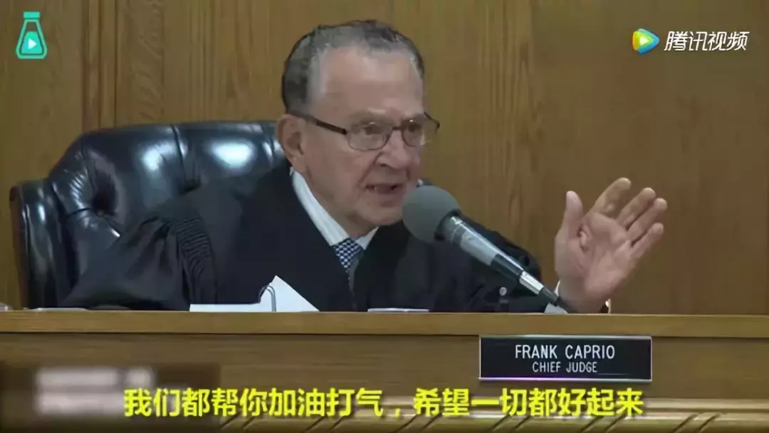 这位男子最后上前去同法官爷爷握手拥抱,抹掉眼泪,无比诚挚地说“谢谢”。