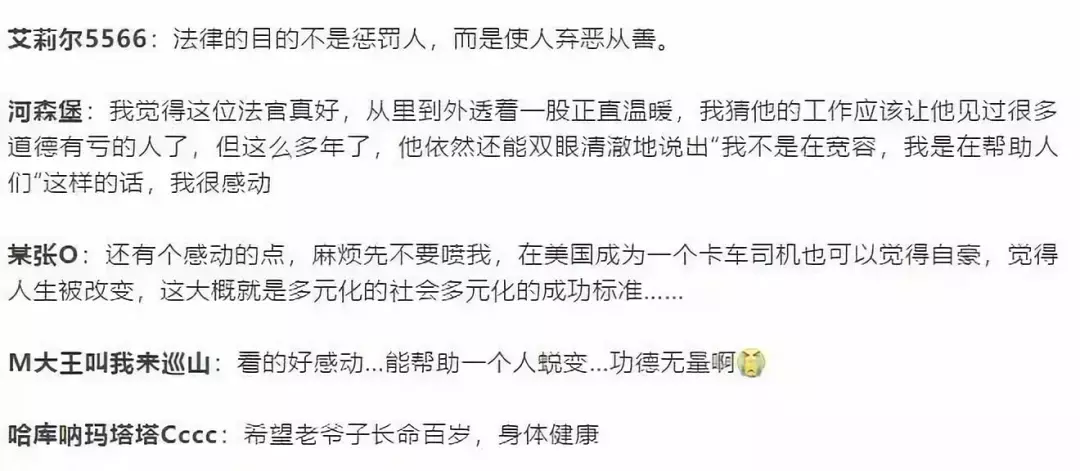 也许这才是法律的真谛,给人向善的力量,鼓励人奋发前行。网友们对这位法官爷爷的做法大加赞赏: