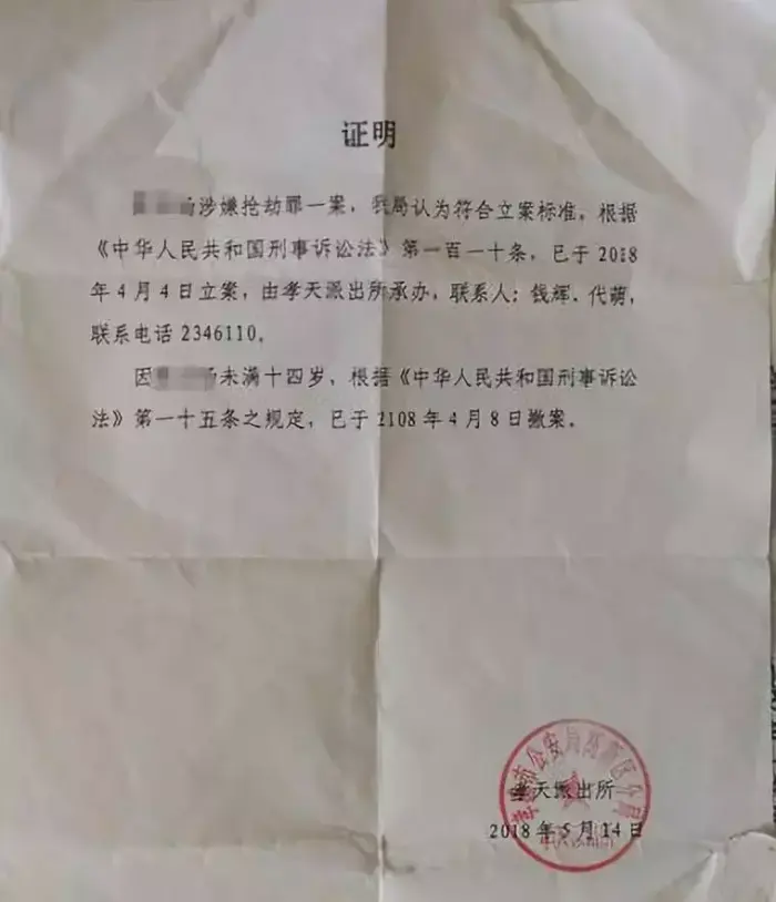 另一则发生在今年3月底,湖北孝感的初二女生小静,放学后回到家楼下。被躲藏在楼道里的同学黄某,持刀抢钱。在尖刀的胁迫下,小静被迫脱光衣服搜身,反抗过程中脖子、手臂和腿上都被男同学划伤。整个施暴过程长达1个多小时。然而,行凶的黄某出生于2004年9月,未达到刑事责任年龄。根据规定,警方对案件不予起诉。