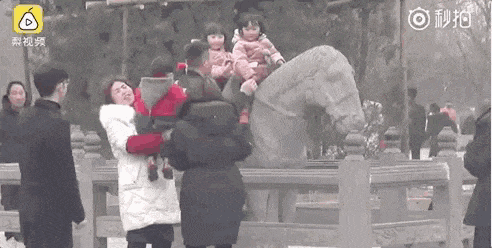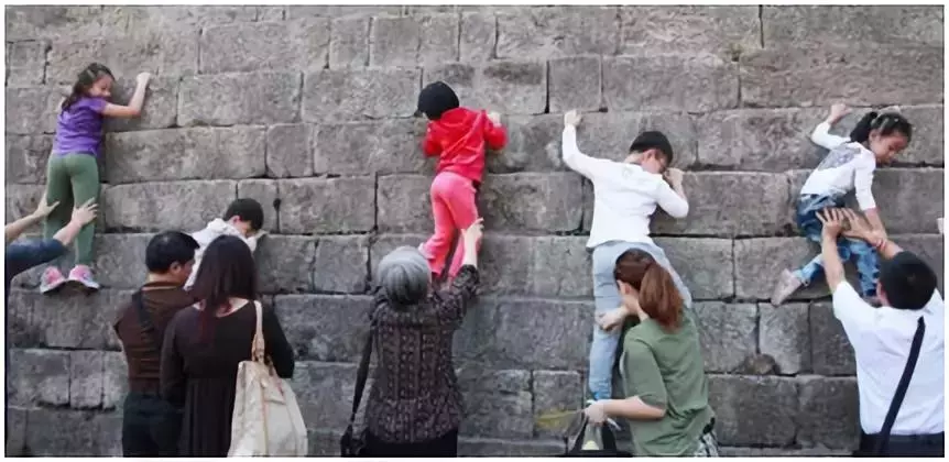 在南京的古城墙上,孩子们在大人的托举之下开始了“飞檐走壁”。