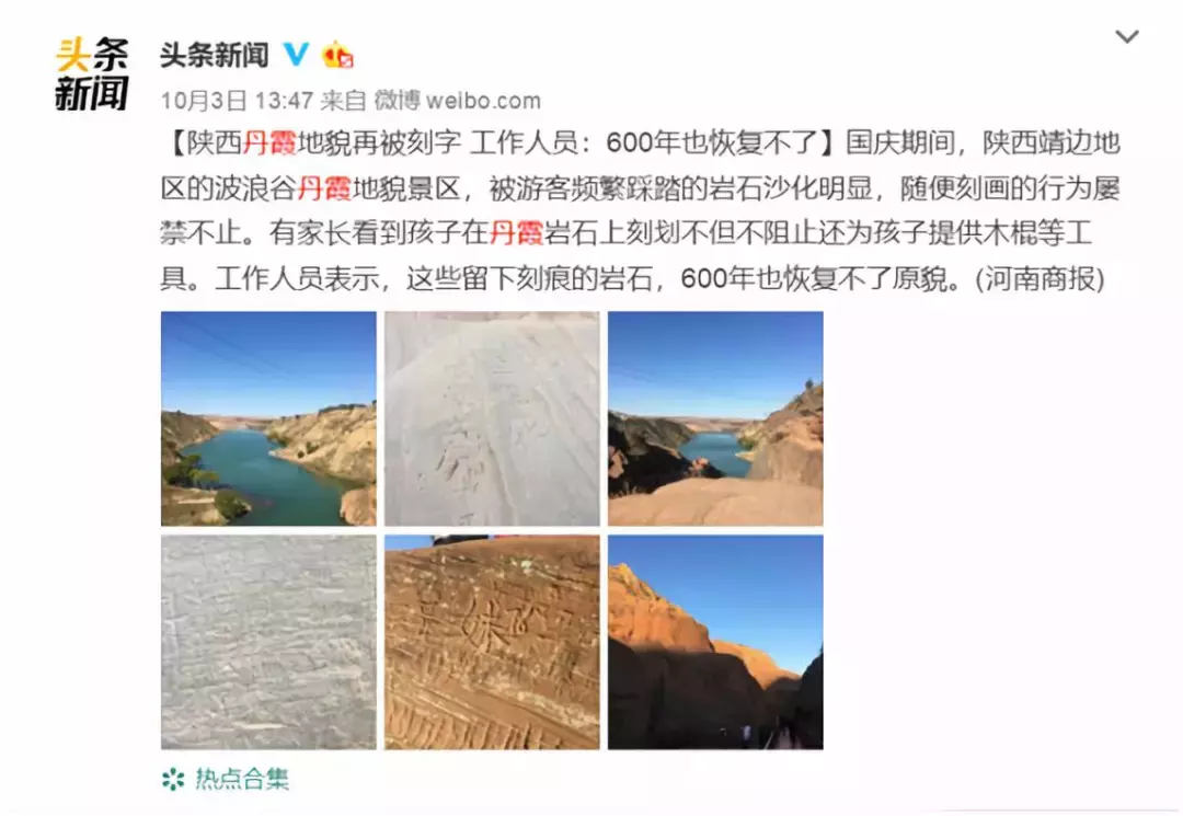 而这破坏不仅仅是在丹霞地貌景区,只要是旅游景点都存在这样丑恶的行为。