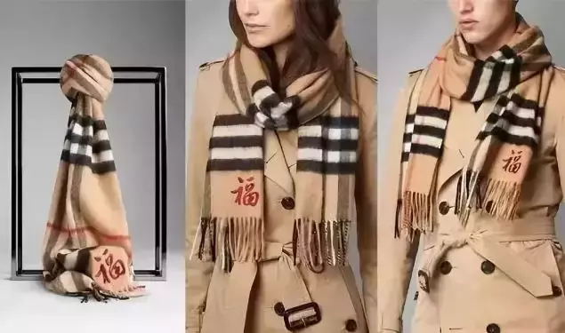 2015年春节前,Burberry就非常有诚意地推出了一款经典格纹围巾的特别款,大红喜庆的“福”字绣在围巾上。这条围巾比标准版本要贵2000块钱,本想指着中国消费者会因为文化认同买单,可是在中国消费者看来,这散发着浓浓乡村风的围巾,谁戴谁才傻帽呢。在微博上就有人说:“Burberry设计师的脑袋是被门挤了吗?”