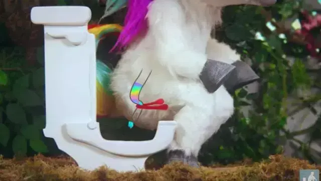 广告里一支独角兽在蹲着拉翔,自然流畅,还能堆积成旋涡状,超级轻松。