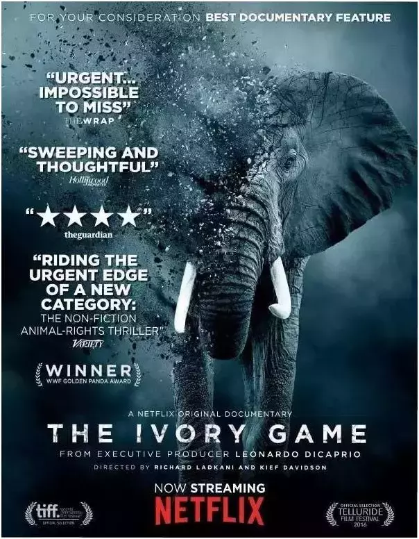 这部纪录片名为《象牙之战》,由著名影星莱昂纳多、微软的保罗•艾伦和Netflix公司联合制作。豆瓣评分高达8.9,向公众揭露了象牙贸易的黑暗世界。