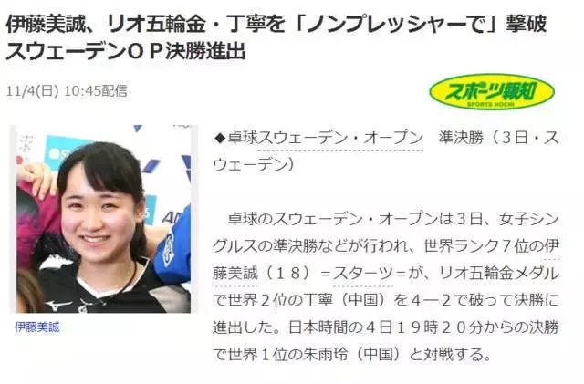 日媒对此激动不已,发文称赞:“伊藤美诚摧毁了中国奥运冠军!”