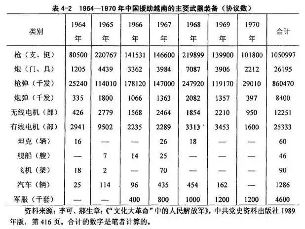 这张表格可以清楚地看到1965年~1970年中国援越的大概数目