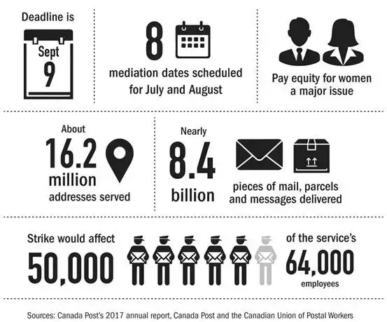 如果要满足工会提出同工同酬问题,那么加拿大邮政将必须投入25亿美元的成本,承担更多的养老金压力,这对于加拿大邮政来说形势也很不乐观。
