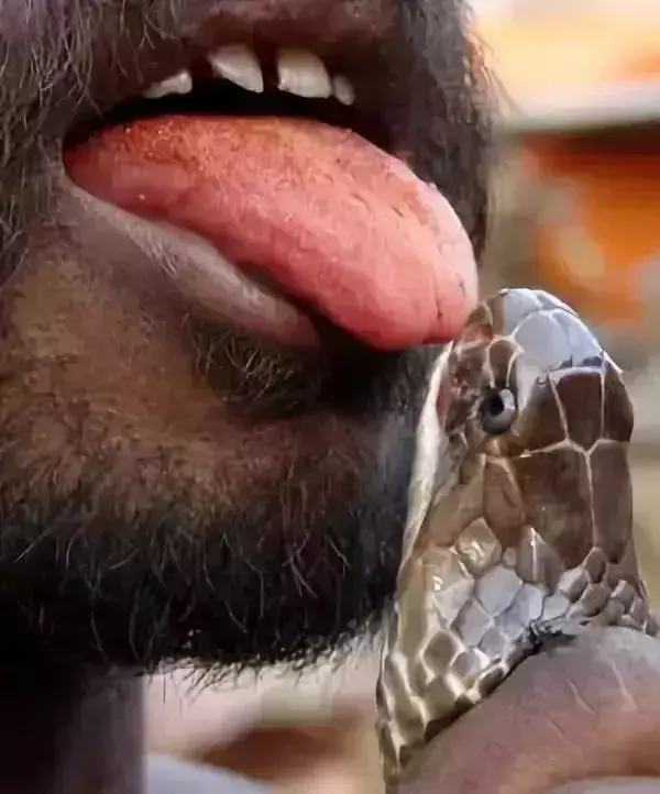 据报道,印度有一名男子33岁的男子故意让眼镜蛇咬伤自己的舌头,以寻求快感。
