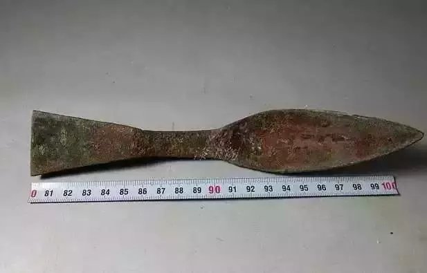 下面这是出土的商代青铜匕,它具有两种实用功能:一是相当于勺子,二是相当于餐刀。可以切,可以捞。