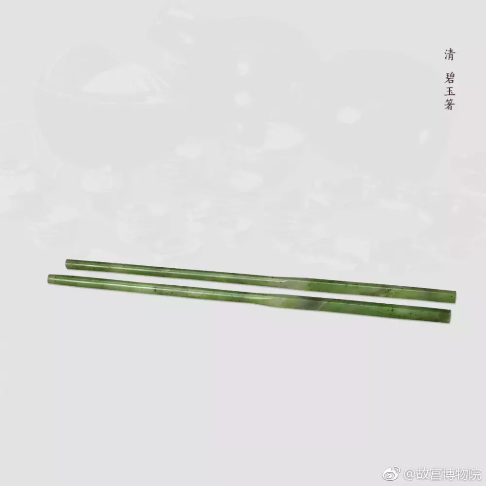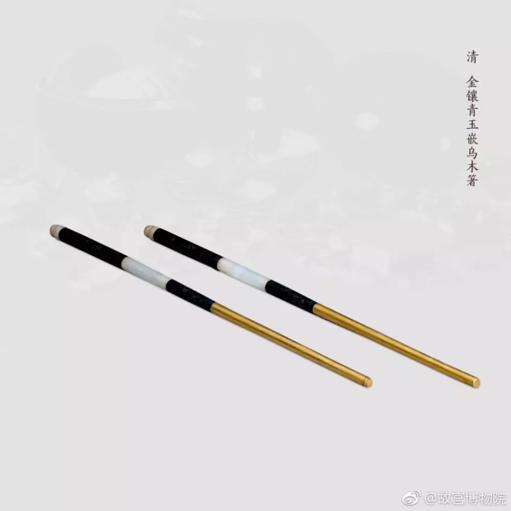 清·金镶青玉嵌乌木箸 来源/@故宫博物院