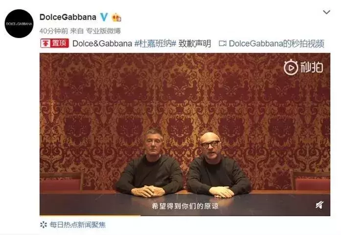 看着市场和金钱的份上,D&G做出姿态,承认错误。