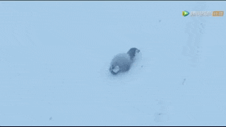有的则始终不放弃,这只企鹅妈妈缓慢地行走着,也许它早已筋疲力尽,但它始终带着宝宝一起,因为它想让自己的孩子顺利地活到明年开春。