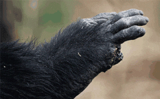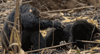 有几只猩猩不舍就这样抛下它不管,它们不顾目前的首领已经易位,依旧拨开大部队,来到戴维身边,为它舔舐伤口,同它告别。