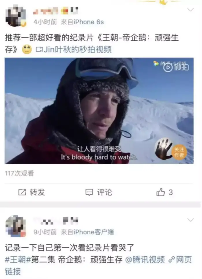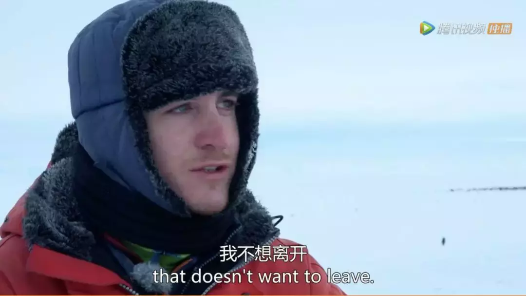 他们的脚下是深不可见底的海水,走在冰面上,随时可能会被寒冷侵蚀,面临生命危险,可在拍摄完毕后,得知要离开这里,离开这群企鹅们时,这位先前经历过再多磨难都不曾掉眼泪的拍摄队员,却忍不住泪奔了……