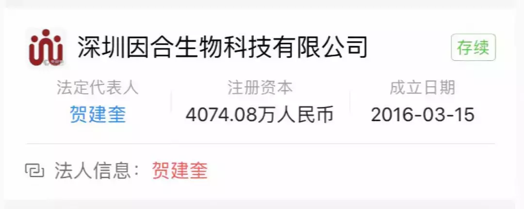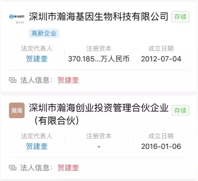 根据澎湃新闻的统计,贺建奎是7家公司的股东、6家公司的法定代表人,这7家公司的总注册资本高达1.51亿元。