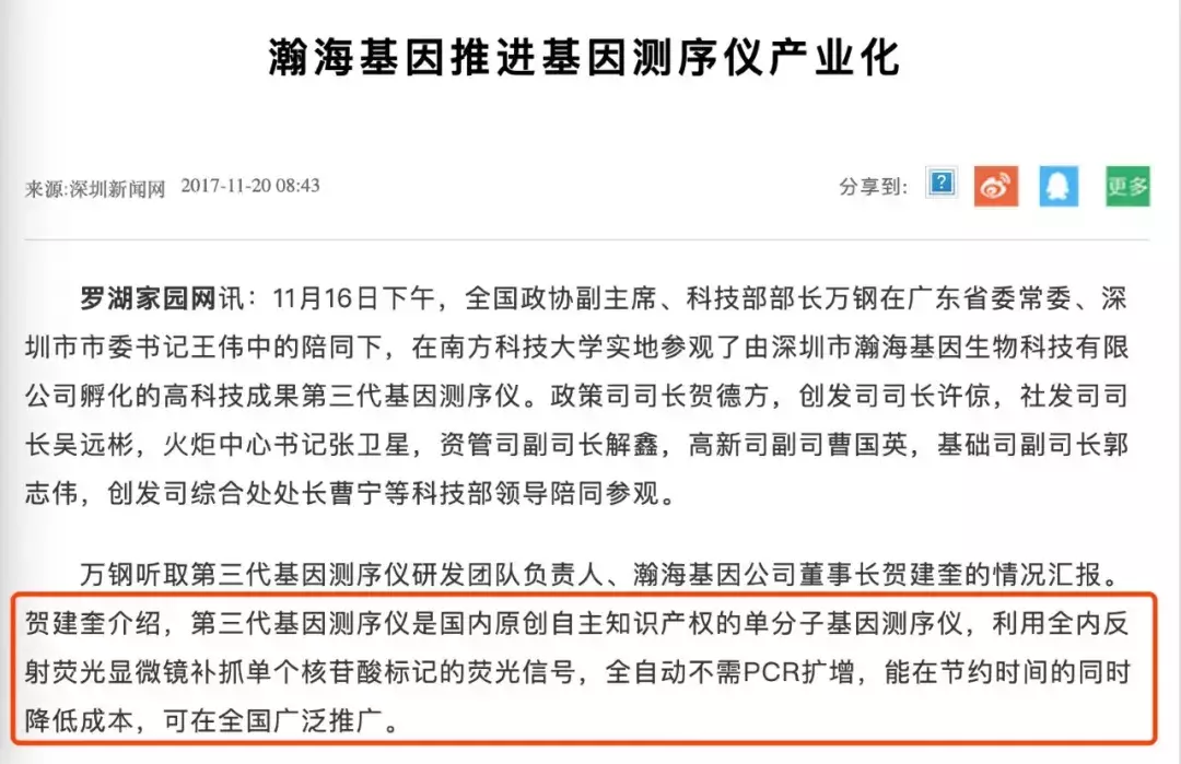 而成立最早的深圳市瀚海基因生物科技有限公司,主要业务正是第三代基因测序仪的产业化,在不少公开发言中,贺建奎都不止一次推销过该公司产品。