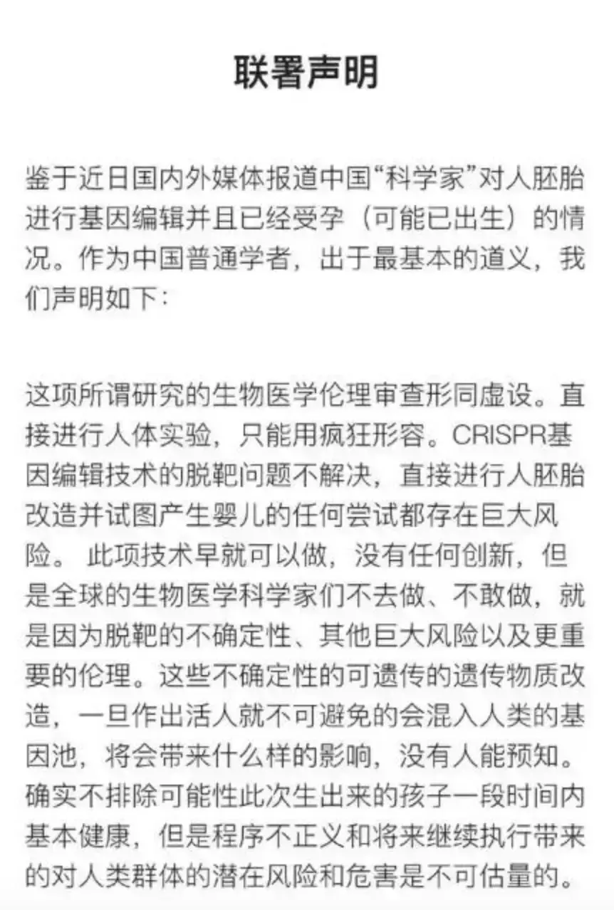 因此,不少研究学者得出了同一结论:贺建奎这一研究,完全没有任何层面的必要性!而且,一旦出现某种意外,很可能导致露露和娜娜出现严重损伤,甚至死亡,后果将不堪设想。