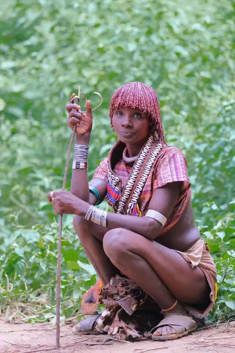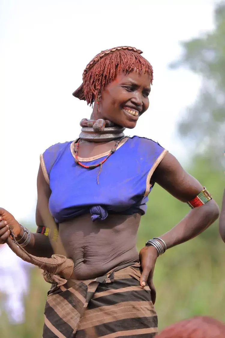 哈莫女人在部落没有什么地位,干活的大多是妇女。