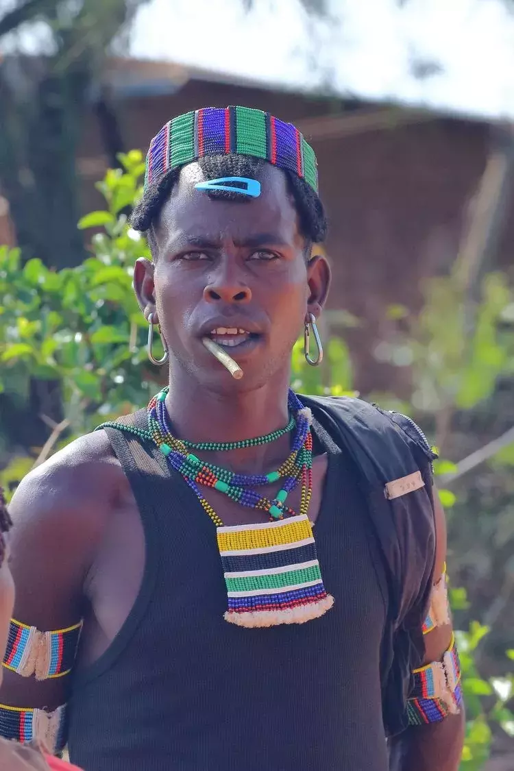 哈莫男人游手好闲,且喜好妆扮,耳环、项链,但凡女人有的一个不能少,时髦的头上还插着花。