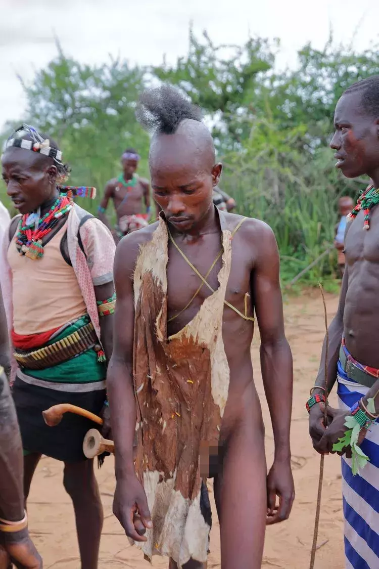 在欢呼声中,赤身裸体、发型怪异的成人礼主角登场。