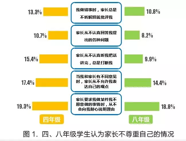 部分学生报告家长不尊重自己的情况,这主要体现在这几个方面: