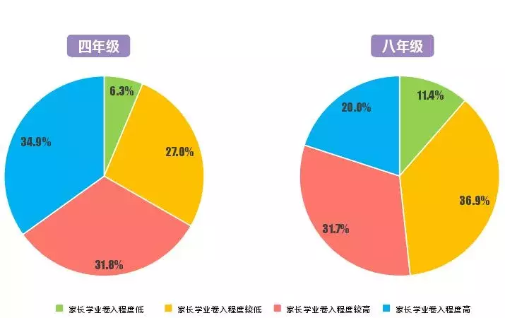 报告显示,三成四年级学生、近五成八年级学生报告家长学业卷入程度低和较低。