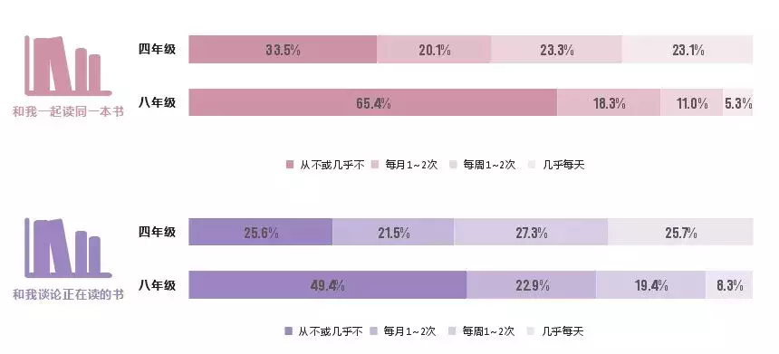 再者,在“和我一起读一本书”“和我讨论正在读的书”两方面,中国大部分家长都做不到一周一次。