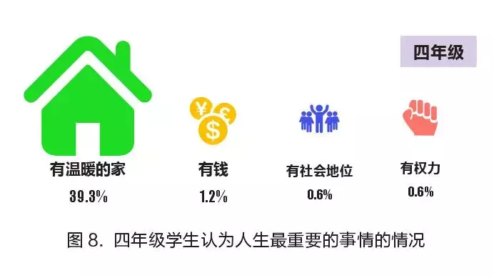 无论是四年级学生还是八年级的,都表现出来对温暖家庭的期望。