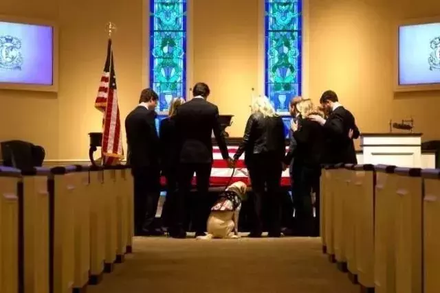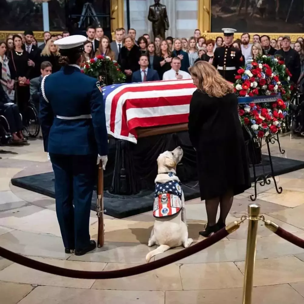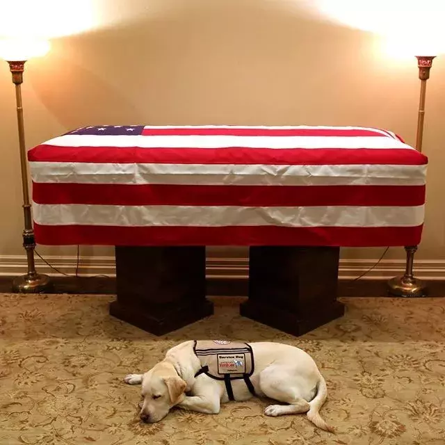 老布什的葬礼上,也出现了这只拉布拉多的身影,仿佛在和老布什作最后的道别。
