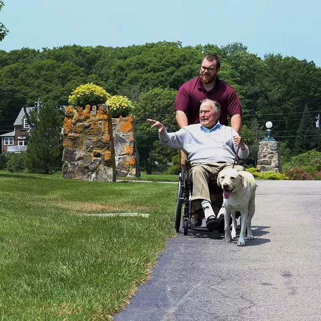 2012年,老布什身患血管性帕金森综合症,从此便坐上了轮椅,行动不便。今年4月,妻子芭芭拉去世后,老布什的身体每况愈下,加上摔了一跤,生活不能自理。