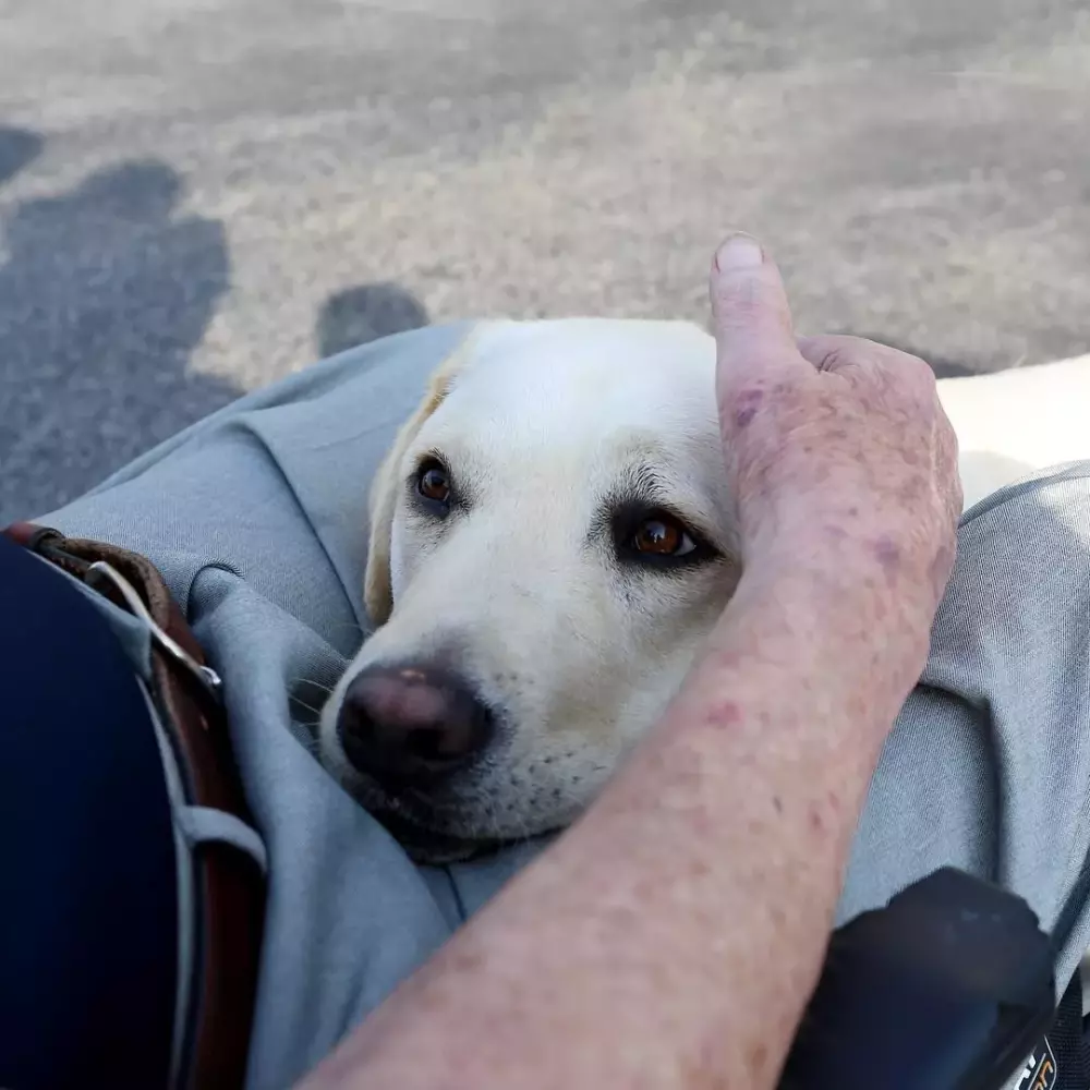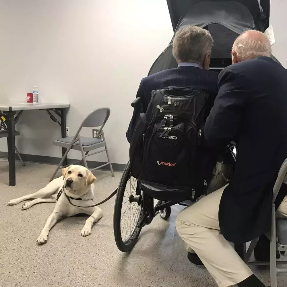 6月,一直名叫萨利(Sully)的服务犬来到了他的身边,照顾他的生活起居。