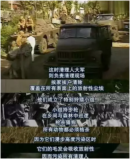 局势暂时控制之后,重中之重就是清理核辐射物质。这项任务出现了一个新的称呼——“清理人”,他们清理动物,进行大屠杀;清理房屋,进行大掩埋……