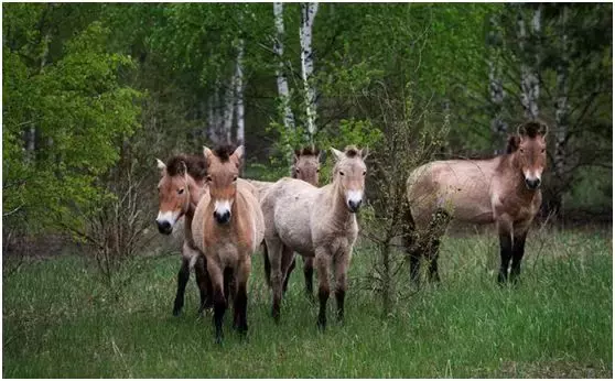 一种被认为已经灭绝的普氏野马结伴而行;