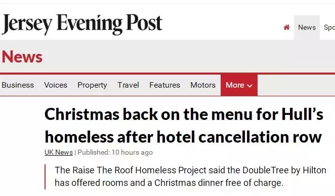 更令人暖心的是,希尔顿酒店后来主动联系Simpson表示,他们愿意免费在圣诞节和节礼日两天为流浪者们提供14个房间,并提供免费的早餐和圣诞大餐。
