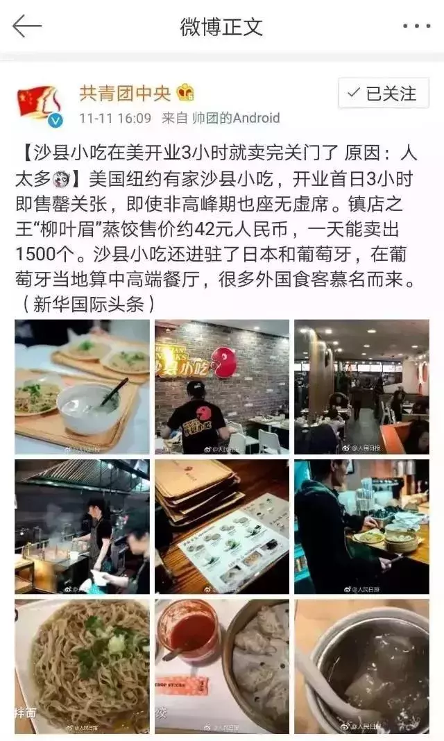 前不久,中国最知名街头小吃三巨头之一的“沙县小吃”,开始进军海外市场。最新在纽约开张的分店,开业第一天只营业了3个小时就关门,原因是准备的食物全部卖光了。