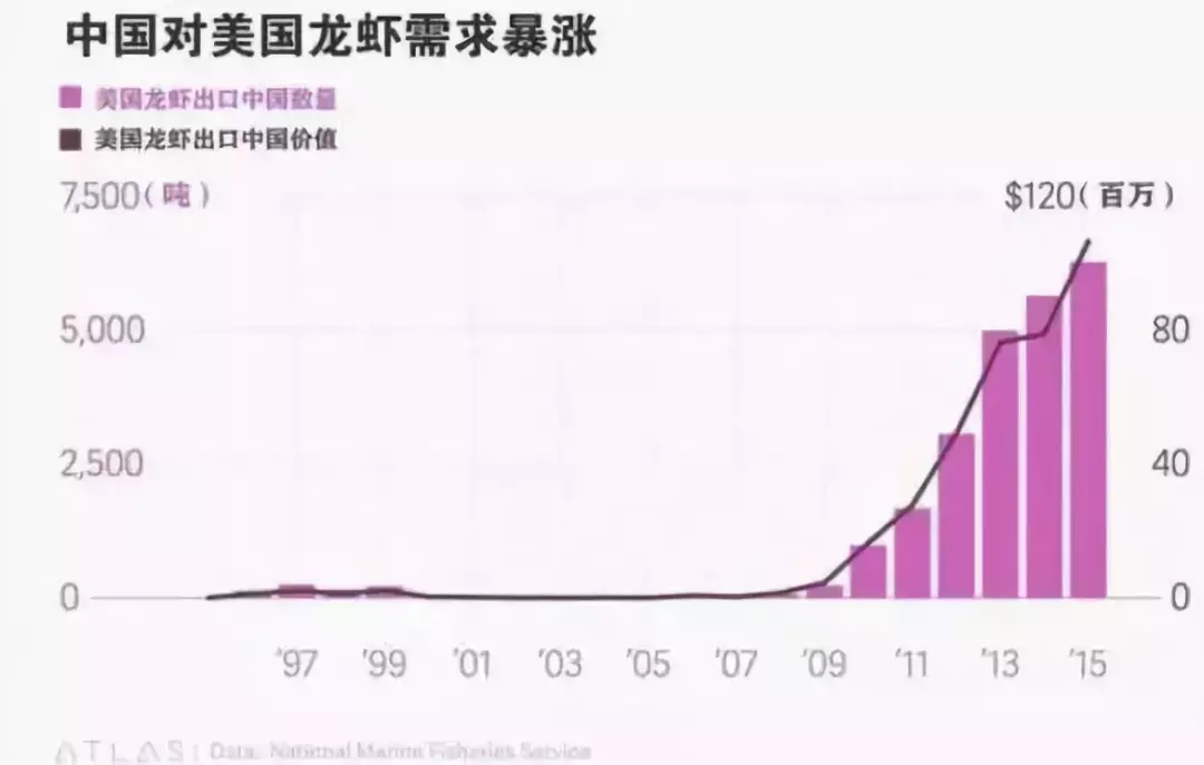 2010年左右,缅因州龙虾每年出口到中国份额只占他们产量的1%,可自从攀上了中国吃货之后,现在中国进口龙虾占到了美国龙虾出口总额的15%,而且连年攀升。抱紧中国吃货的大腿,缅因州的人民,生活滋润乐得合不拢嘴。