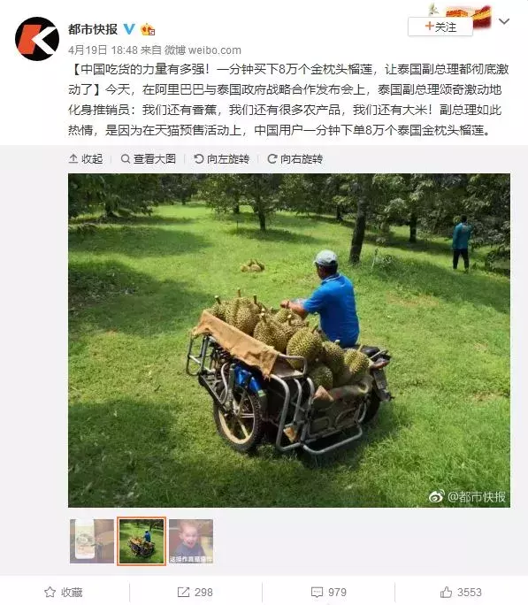 这可把泰国副总理激动坏了,赶紧亲自出马向中国吃货隔空喊话“除了榴莲,我们还有泰国香米,还有香蕉哦”。