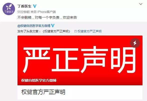 但丁香医生选择了正面刚,欢迎来告,反正我不会删帖。并于当天下午继续曝光权健内幕。