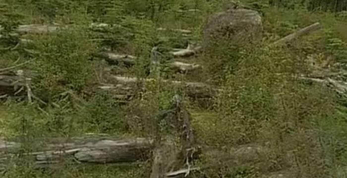一片几百年的冷杉林,竟然被一场雪崩气浪袭,那些粗大的冷杉树齐刷刷地被放到,一棵不剩。
