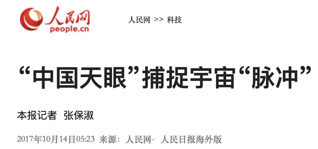 实际上,早在2017年10月9日,中国贵州射电望远镜“天眼”,就曾接收到了来自1351光年的脉冲信号。