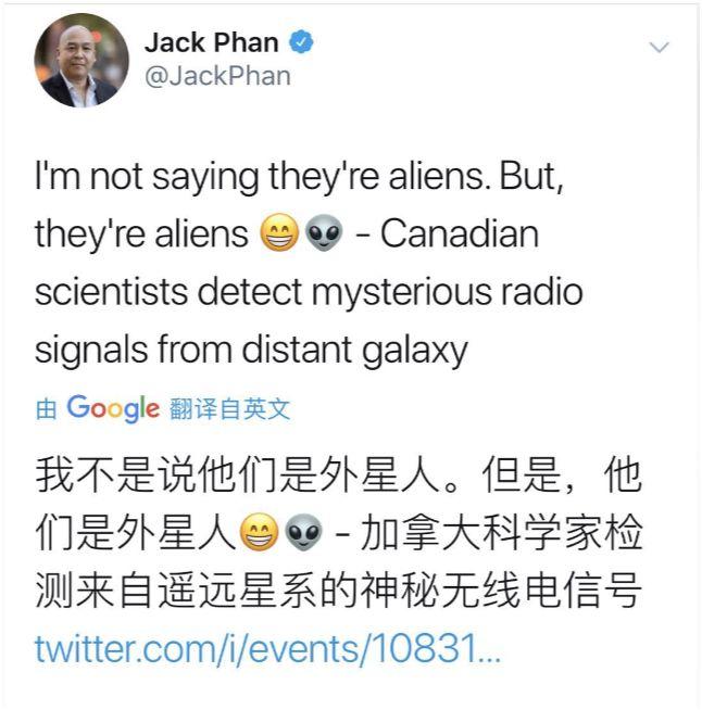 顶级科学期刊《自然》前两天发布两项研究,加拿大天文学家侦测到来自银河系以外发射的神秘电波。