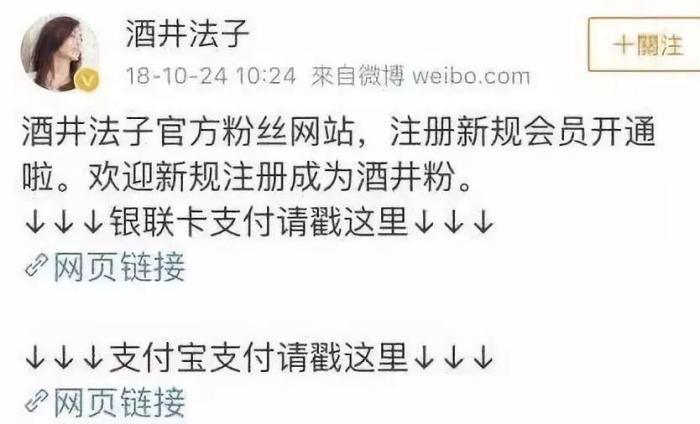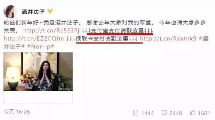 显然,这样的解释非常苍白,因为许多火眼金睛的网友倒到酒井法子之前的微博,惊讶地发现这已经不是她第一次公然在公众社交平台甩出付费链接让粉丝去送钱了……