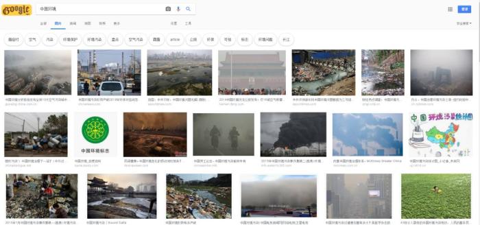打开国外的谷歌搜“中国环境”,第一页都是这样的照片: