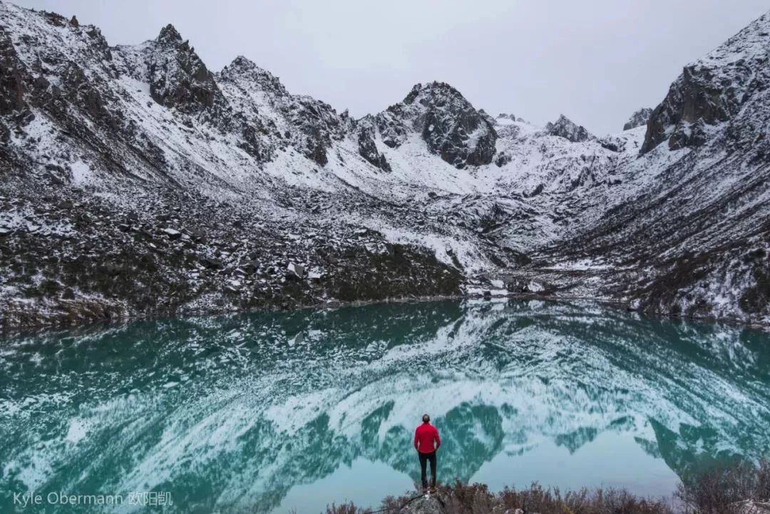 有一次,欧阳凯经过5天的雪中徒步探险,让找到了一个位于四川偏远地带的尚未开发的湖泊。