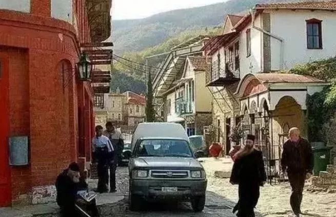 阿陀斯山与陆地连通,只能靠渡船来往,进岛的入口有卫兵把守。