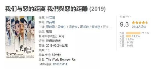 最近,贾静雯主演的台湾电视剧《我们与恶的距离》一开播,就引发了网友的热议,豆瓣评分9.3,已经创下了今年华语片的最高分,微博更是收获了2077万阅读、近8000则的讨论。